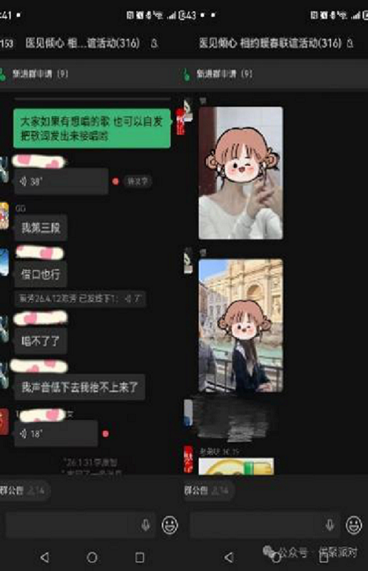 本次活动采用“线上预热+线下互动”模式,让交流更自然、相处更轻松。活动前期,组织搭建了线上交流群,开启云端交友模式。大家通过自我介绍、抢红包爆照、趣味问答、歌曲接唱等轻互动快速破冰,为线下见面营造融洽氛围。